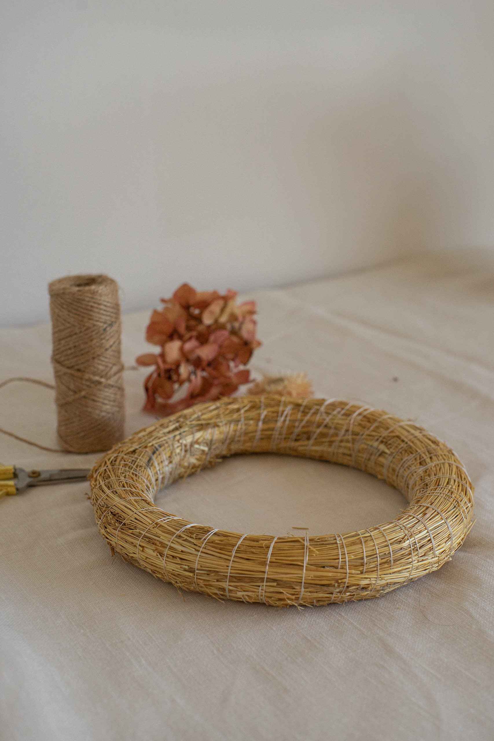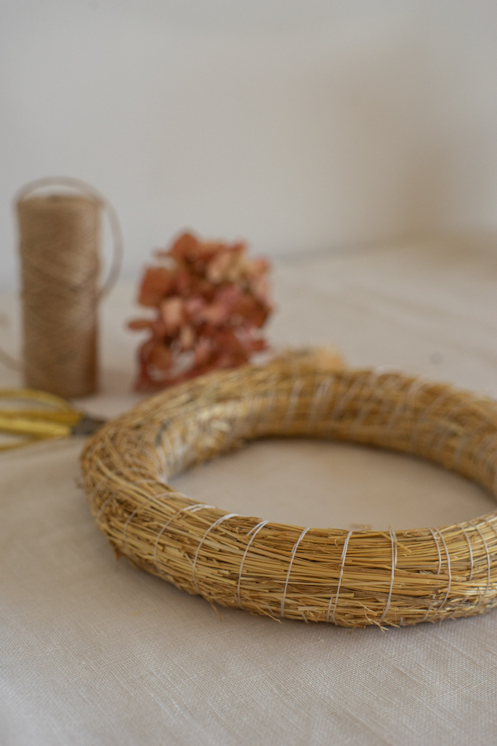 El resultat és una corona artesanal i natural, que combina la calidesa de la palla amb la bellesa de les flors, ideal per a decoracions estacionals, celebracions o com a element simbòlic en actes commemoratius.