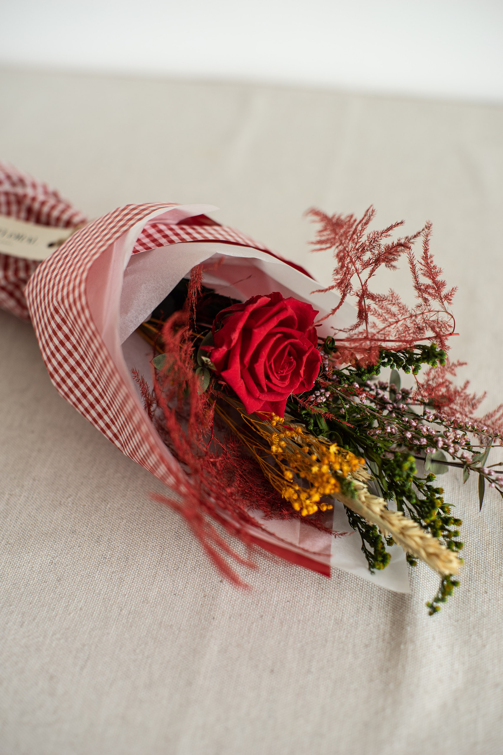 Les flors seques i preservades són fràgils, aconsellem manipular-les el menys possible. No els agrada el sol, conservaran els seus colors més temps si viuen a l’ombra.